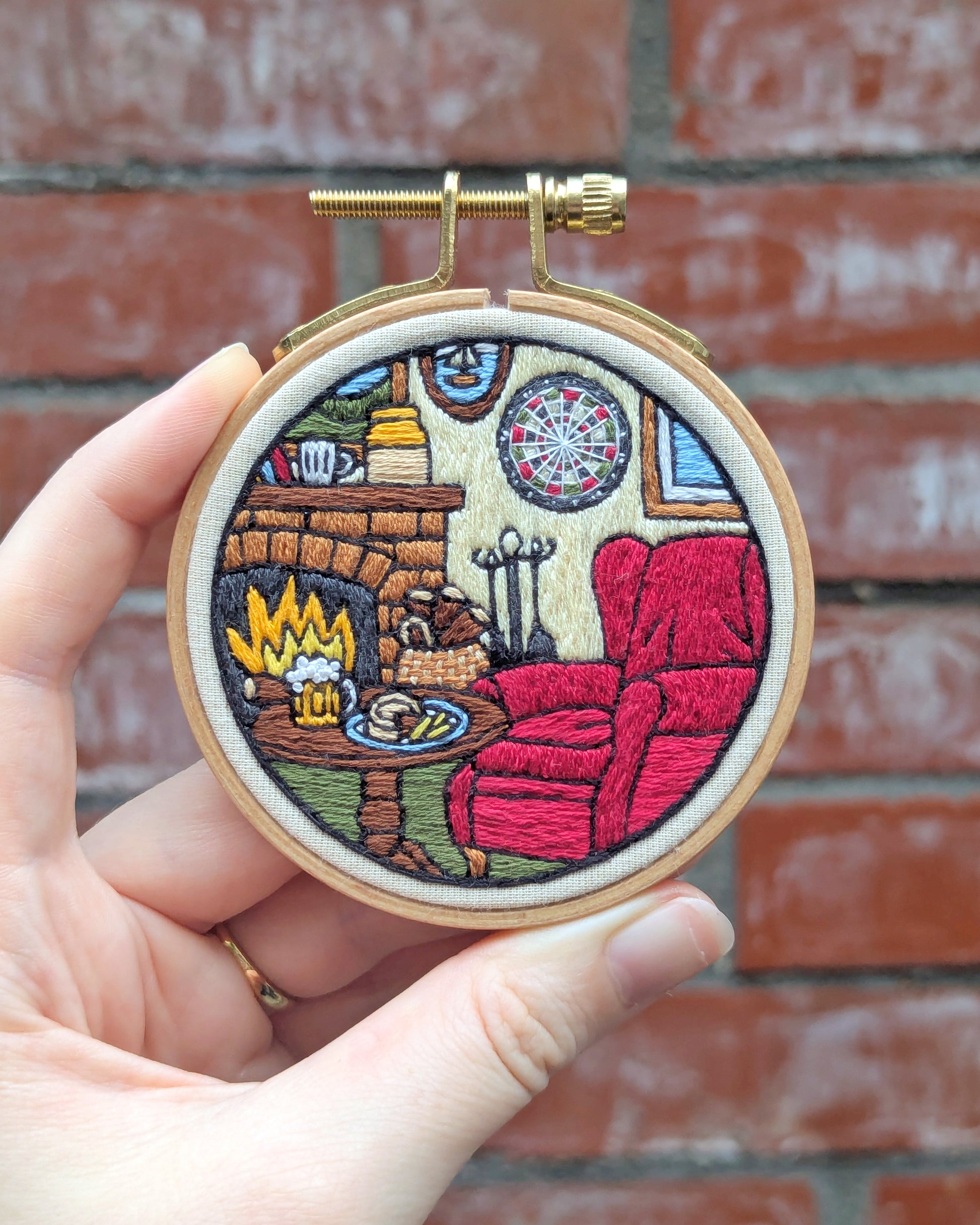 These are my original embroideries from my Big Mini Challenge 2025, in which I stitched a 3" embroidered scene for every week of the year. These embroideries are small works of art: intricately and lovingly designed and hand stitched by me. The subjects range from seasonal inspiration, to people I love, to just about anything I am interested in!