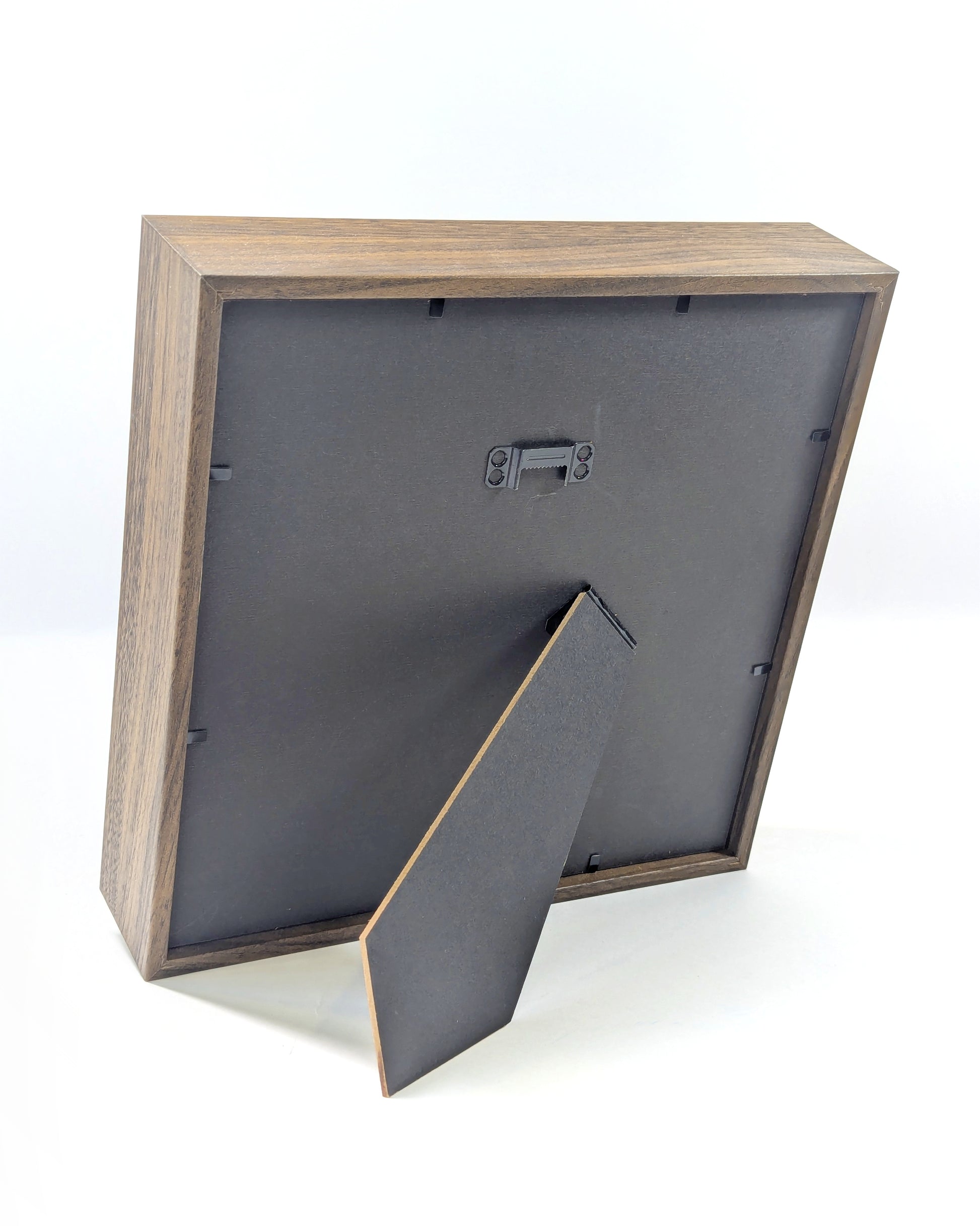 Framed in a 27cm x 27cm x 6cm wood-effect box frame. Can be stood or hung. There is a small scratch at the bottom right of the frame, therefore £25 has been taken off the original price.