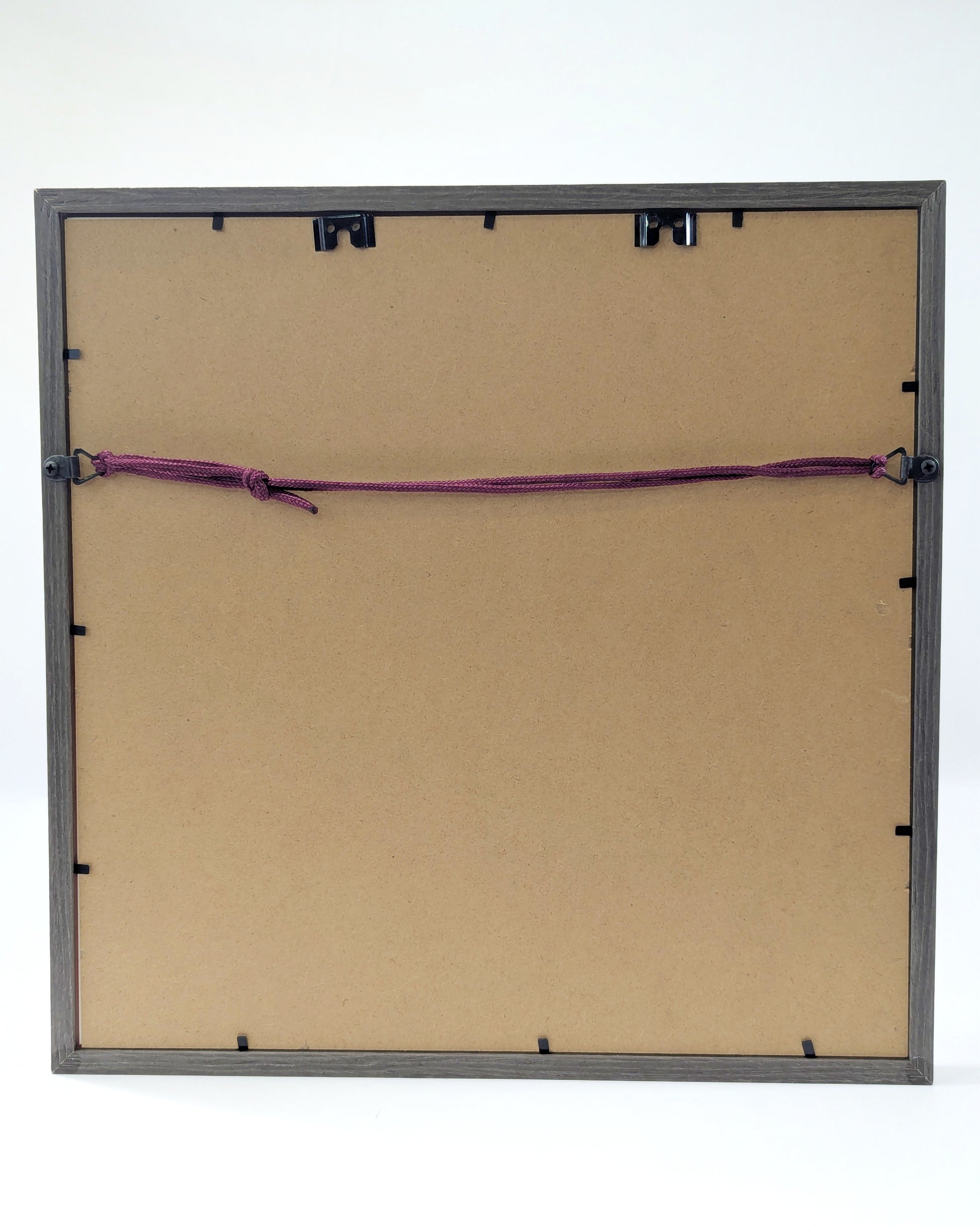 Framed in a 37.5cm x 37.5cm x 3cm grey-toned wooden box frame. Can be stood or hung.